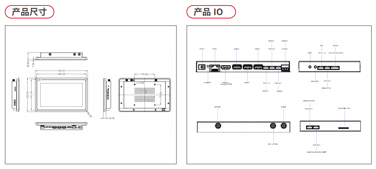 | 串口 | 2路RS232,2路RS485,1路Debug调试口(与RS232复用) |