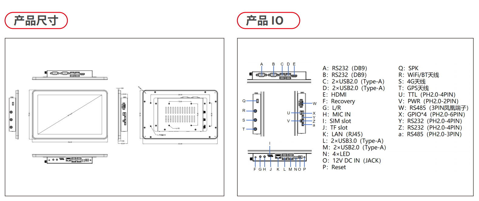 | 串口 | 4路RS232,2路RS485,1路Debug/TTL |