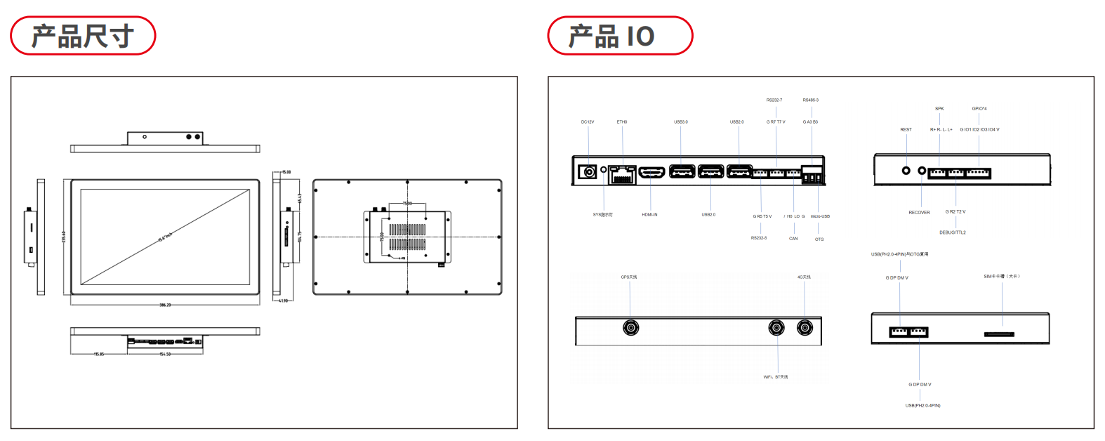 | 串口 | 2路RS232,1路RS485,1路Debug/TTL |