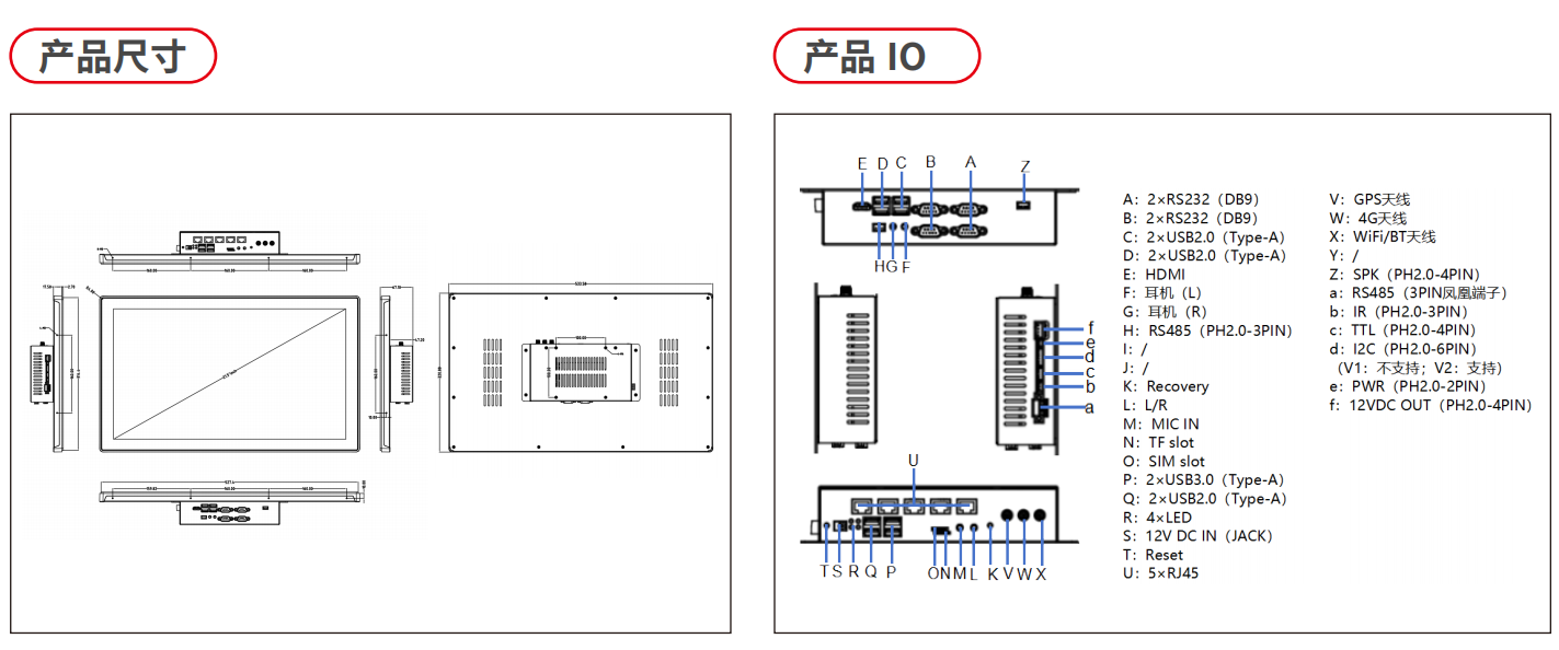 | 串口 | 4路RS232,1路RS485,1路Debug/TTL |