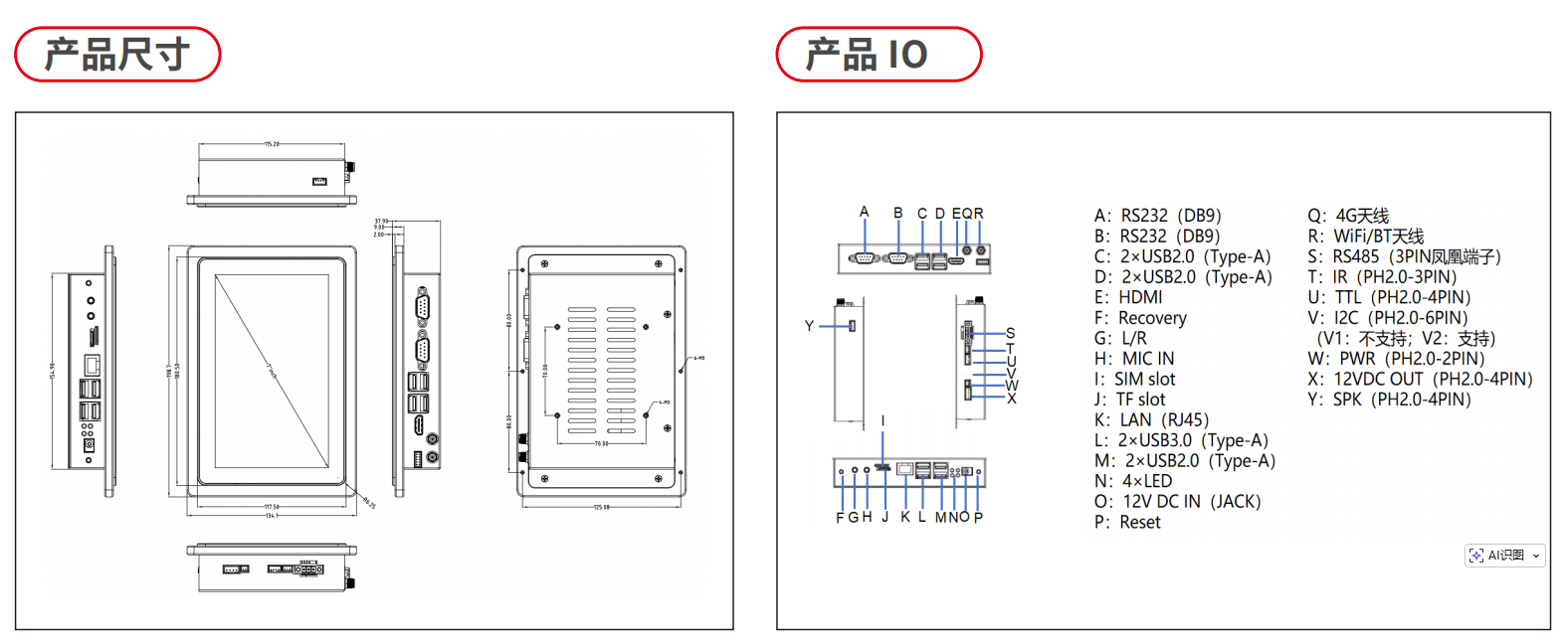 | 串口 | 2路RS232,1路RS485,1路Debug/TTL |