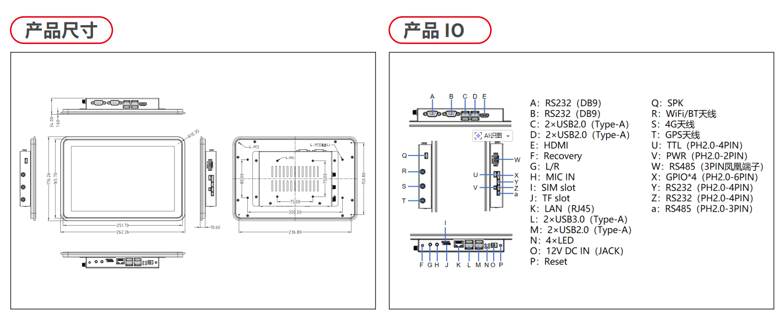 | 串口 | 2路RS232,1路RS485,1路Debug/TTL |