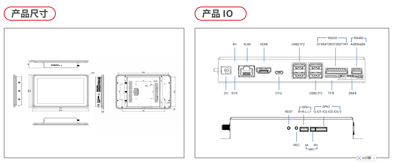 | 音频 | 1路单声道MIC;1路双声道 SPK,4欧3瓦功效 |